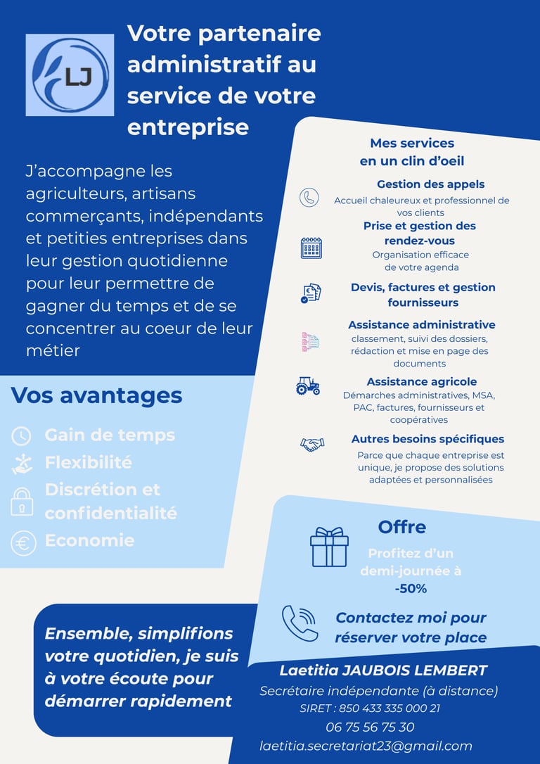 Je propose un accompagnement à distance, flexible et personnalisé, adapté aux besoins de chaque professionnel. Mon objectif : vous faire gagner du temps, alléger votre charge mentale, et vous permettre de vous concentrer sur l’essentiel — votre cœur de métier.